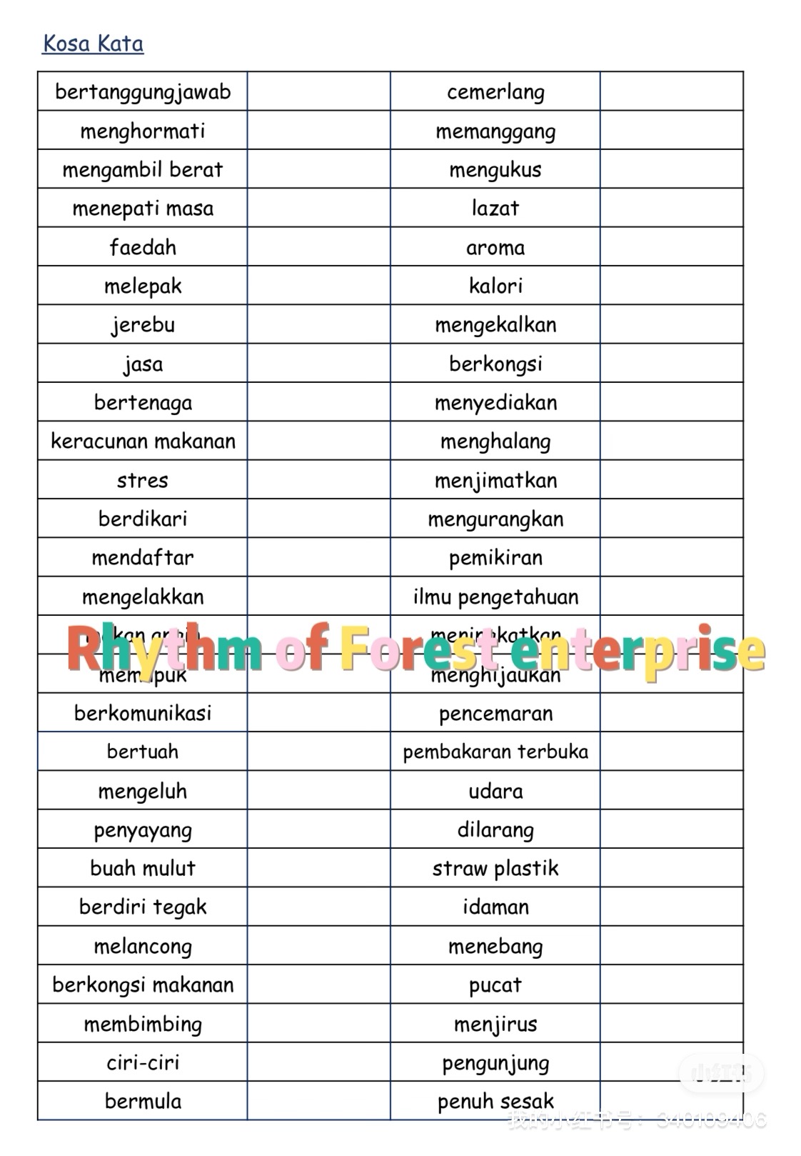 ✨📘 𝗞𝗼𝘀𝗮 𝗞𝗮𝘁𝗮 词汇练习(适合4–6年级学生) 📘✨